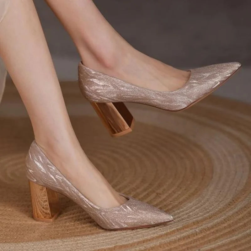 Eleganckie damskie czółenka na stabilnym obcasie to idealny wybór na wyjątkowe okazje oraz do codziennych stylizacji. Klasyczny fason z lekko spiczastym noskiem podkreśla kobiecy styl i pasuje zarówno do sukienek, jak i eleganckich spodni.