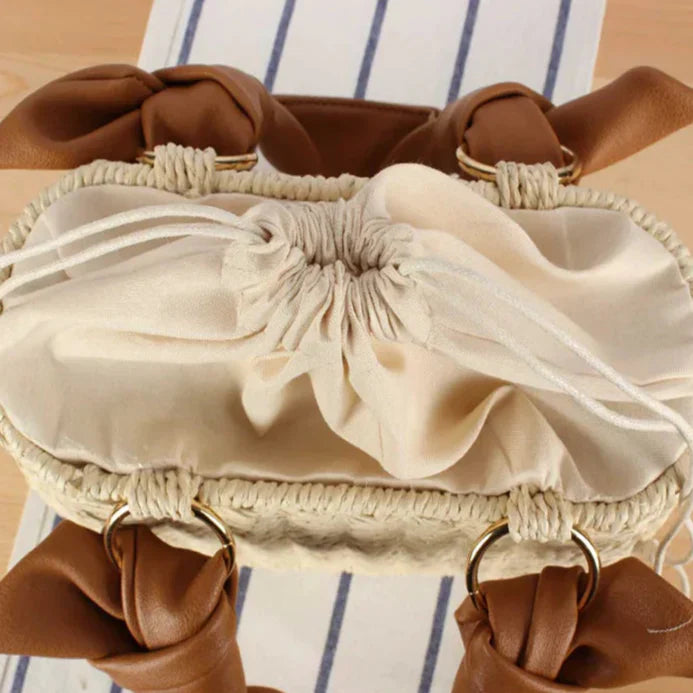 Zaprojektowana z ręcznie plecionego słomy i wykończona miękkim, węzłowym uchwytem ze skóry, ta torba wprowadza elegancką równowagę tekstury i uroku. Lekka do noszenia i przestronna w środku, zapewnia bezpieczeństwo najważniejszych rzeczy, dodając jednocześnie odrobinę klasy i stylu.