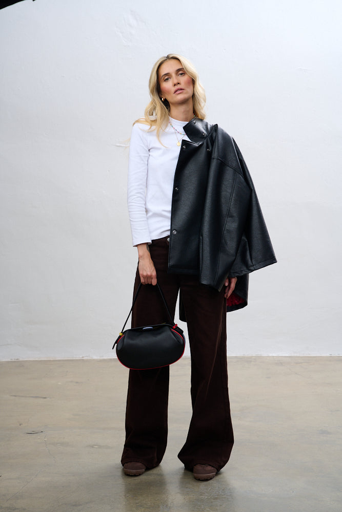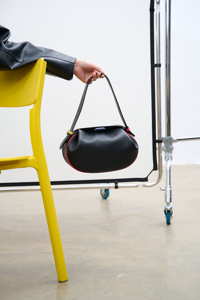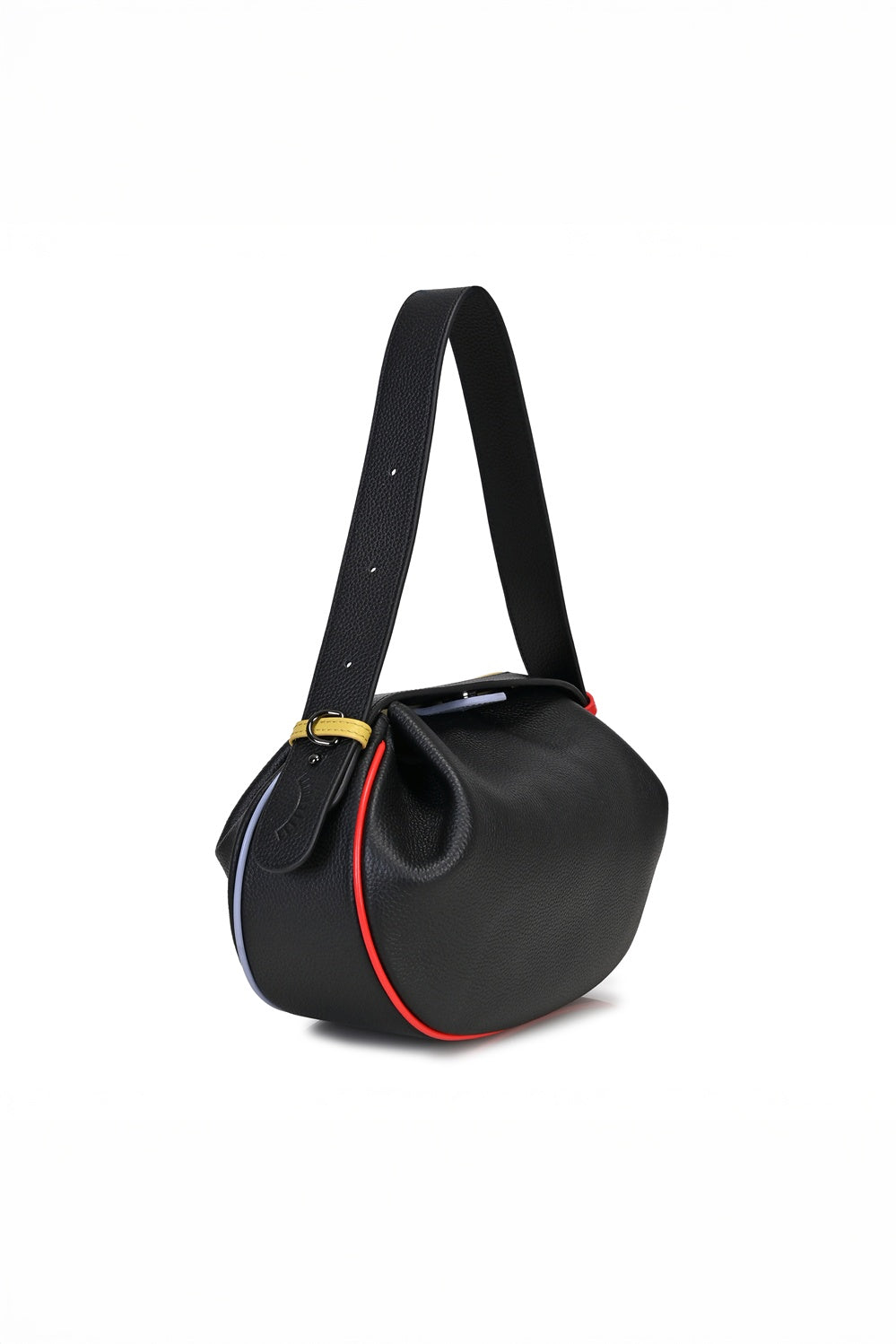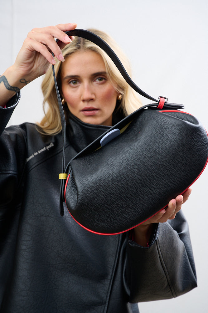 Torebka Pop Art to idealny wybór dla minimalistek, które kochają wyrazisty detal. Ten model to klasyczna, czarna torebka na ramię o wygodnym, półokrągłym kształcie i zapięciu na zatrzask. Jej sekret tkwi w kolorze – a dokładniej w kontrastowej lamówce.