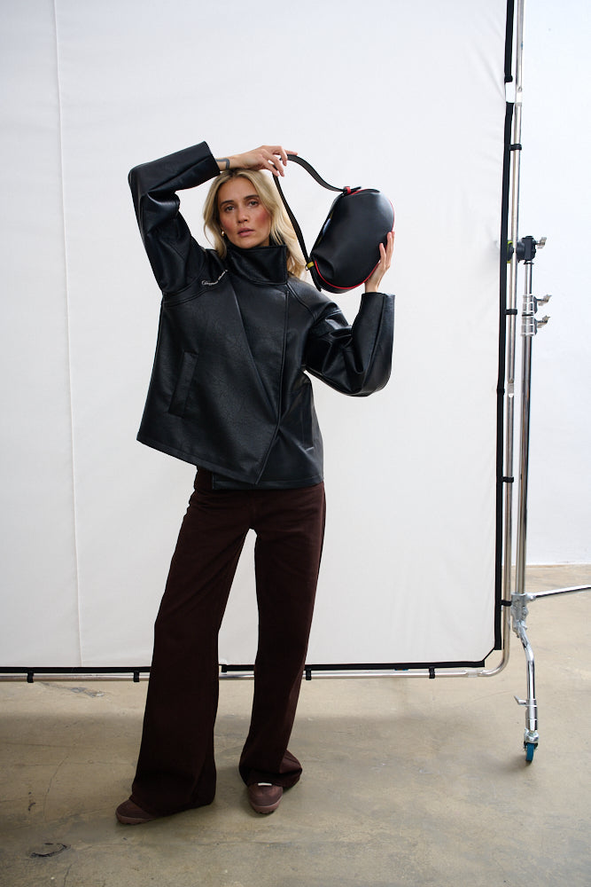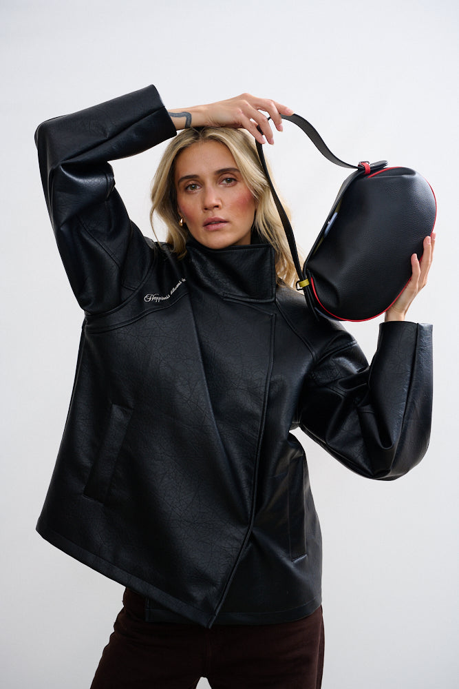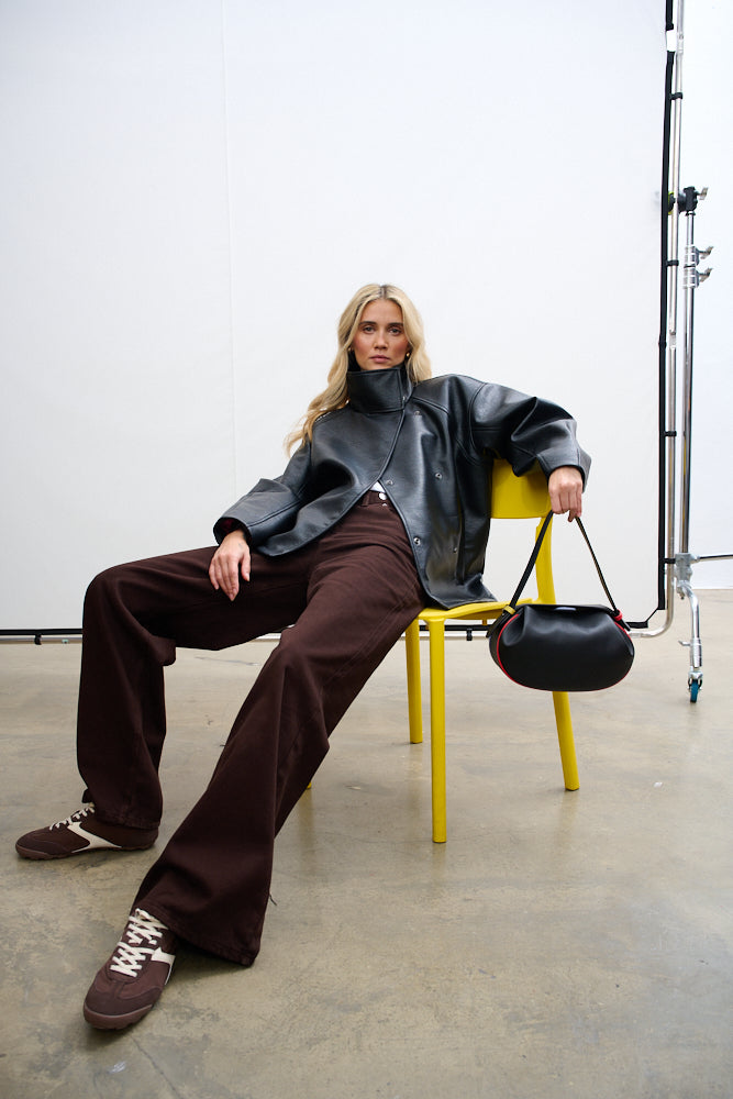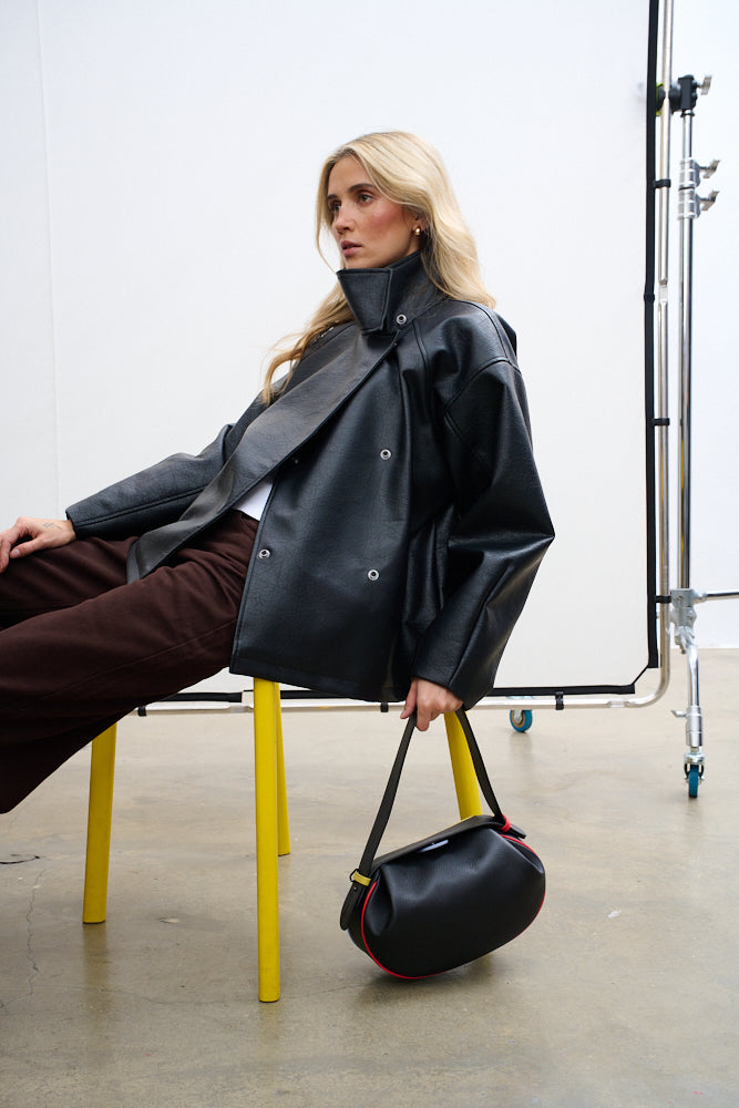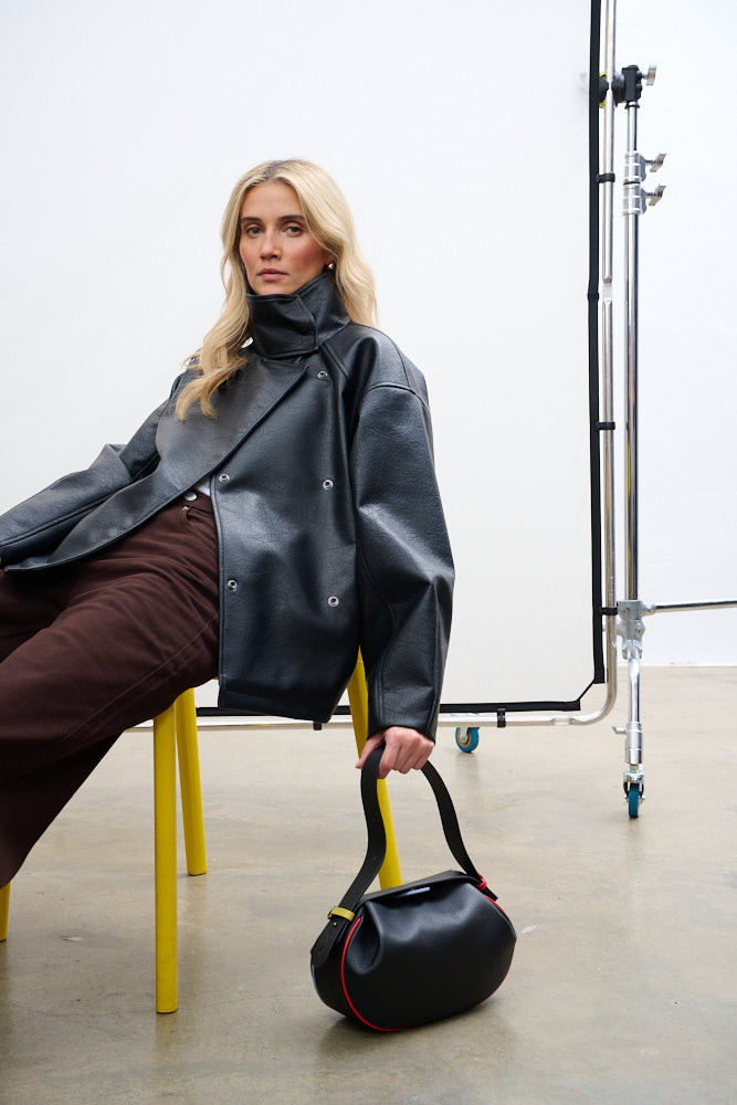 Torebka Pop Art to idealny wybór dla minimalistek, które kochają wyrazisty detal. Ten model to klasyczna, czarna torebka na ramię o wygodnym, półokrągłym kształcie i zapięciu na zatrzask. Jej sekret tkwi w kolorze – a dokładniej w kontrastowej lamówce.